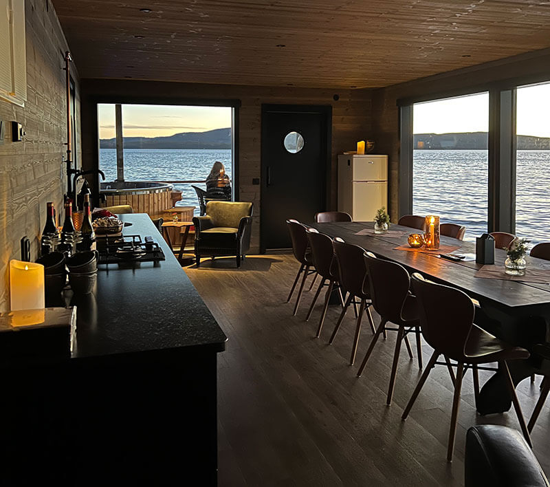 Vi är ensamma i regionen om att kunna erbjuda en konferensflotte med hotellrum, kök, lounge med TV och Wi-Fi, omklädningsrum, vedledad bastu och vildmarksbad. Koppla bort allt annat och njut!Läs mer om vår bastuflotte/konferensflotte